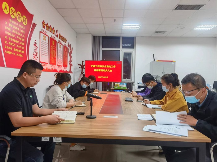 为进一步做好校园安全稳定工作,喜迎党的二十大顺利召开,交通工程系于10月4日晚19:30召开安全稳定工作再动员再部署动员大会,传达部署落实学院安全稳定会议精神。交通工程系全体师生参会,会议由系党总支书记齐晓东...
