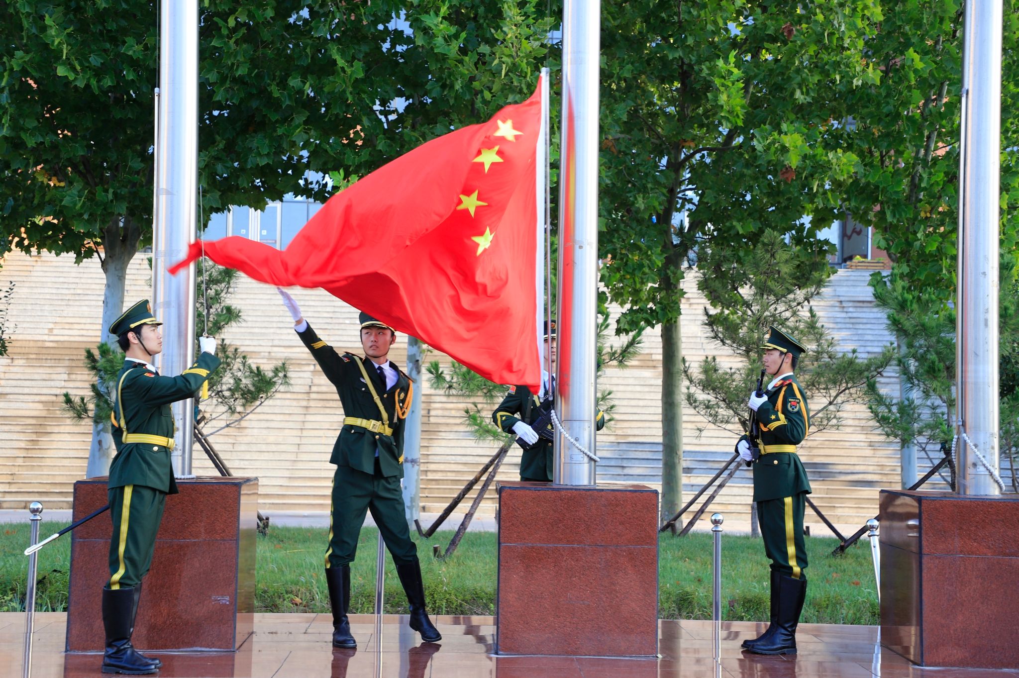 秋风猎猎展红旗,晨曦煌煌贺华诞。为庆祝新中国成立75周年,进一步弘扬爱国主义精神,增强师生爱国意识和民族自豪感,10月1日上午,我校隆重举行庆祝新中国成立75周年升旗仪式。党委书记张效松、校长王滨、党委副书记崔立功、副校长于振海、副校长杨凯及师生代表共计1000余人参加了升旗仪式。升旗仪式由校长王滨主持。上午7点,升旗仪式正式开始。国旗护卫队队员迈着铿锵有力的步伐,护卫五星红旗来到升旗台。伴随着雄壮的《义勇军进行曲》...