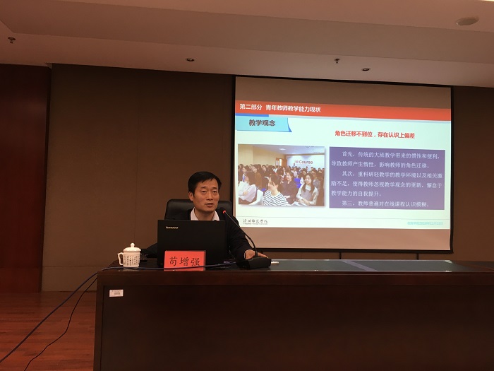 11月16日下午,在弘文守正楼9楼报告厅,我校青年教师教学发展培训班第六讲开讲,沧州师范学院教育学院院长苟增强教授受邀作了题为《信息化背景下高校青年教师教学能力提升的策略》的精彩报告。 苟院长从时代背景与概...