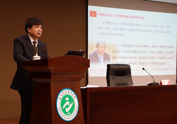 为全面贯彻落实党的十九届四中全会精神,推进全会制定各项目标落地落实,提升我校治理体系和治理能力现代化水平,11月29日下午,学校党委书记陈进杰在弘文守正楼九楼报告厅为学校师生宣讲党的十九届四中全会精神。 陈...