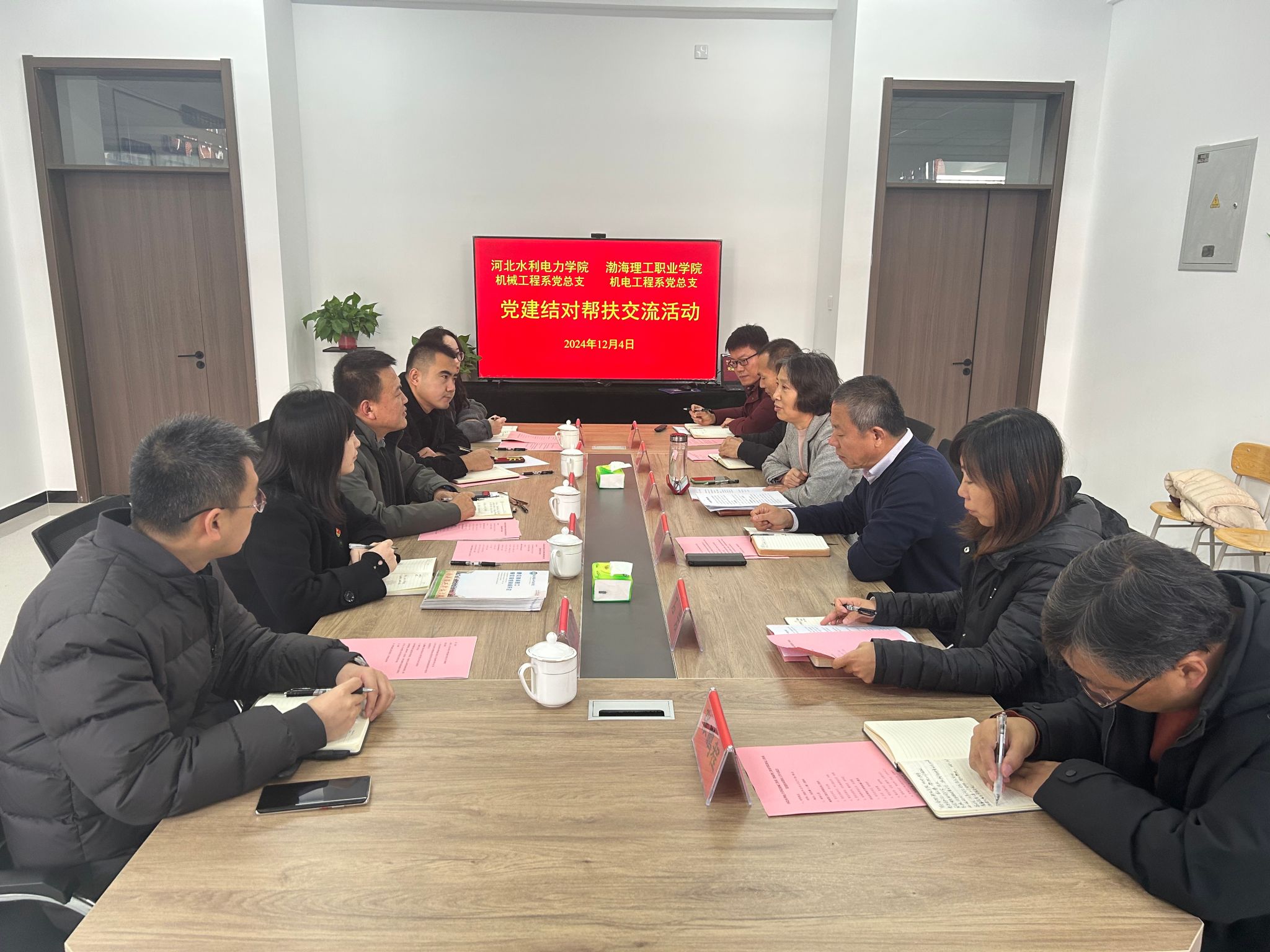 为深入贯彻省委教育工委党建结对帮扶工作相关要求,推进落实《荣耀体育·荣耀体育(中国)官方网,党委与渤海理工职业学院党委党建结对帮扶年度工作计划》,12月4日,机械工程系党总支在求是楼B204与渤海理工职业学院机电工程系党总支开展党建结对帮扶活动,两系党总支书记、系党总支委员、党支部书记、骨干教师代表参加活动。机械工程系党总支书记荆秀萍对渤海理工职业学院机电工程系党总支书记李文涛一行的到来表示热烈欢迎,并以“围绕中心抓党建,...