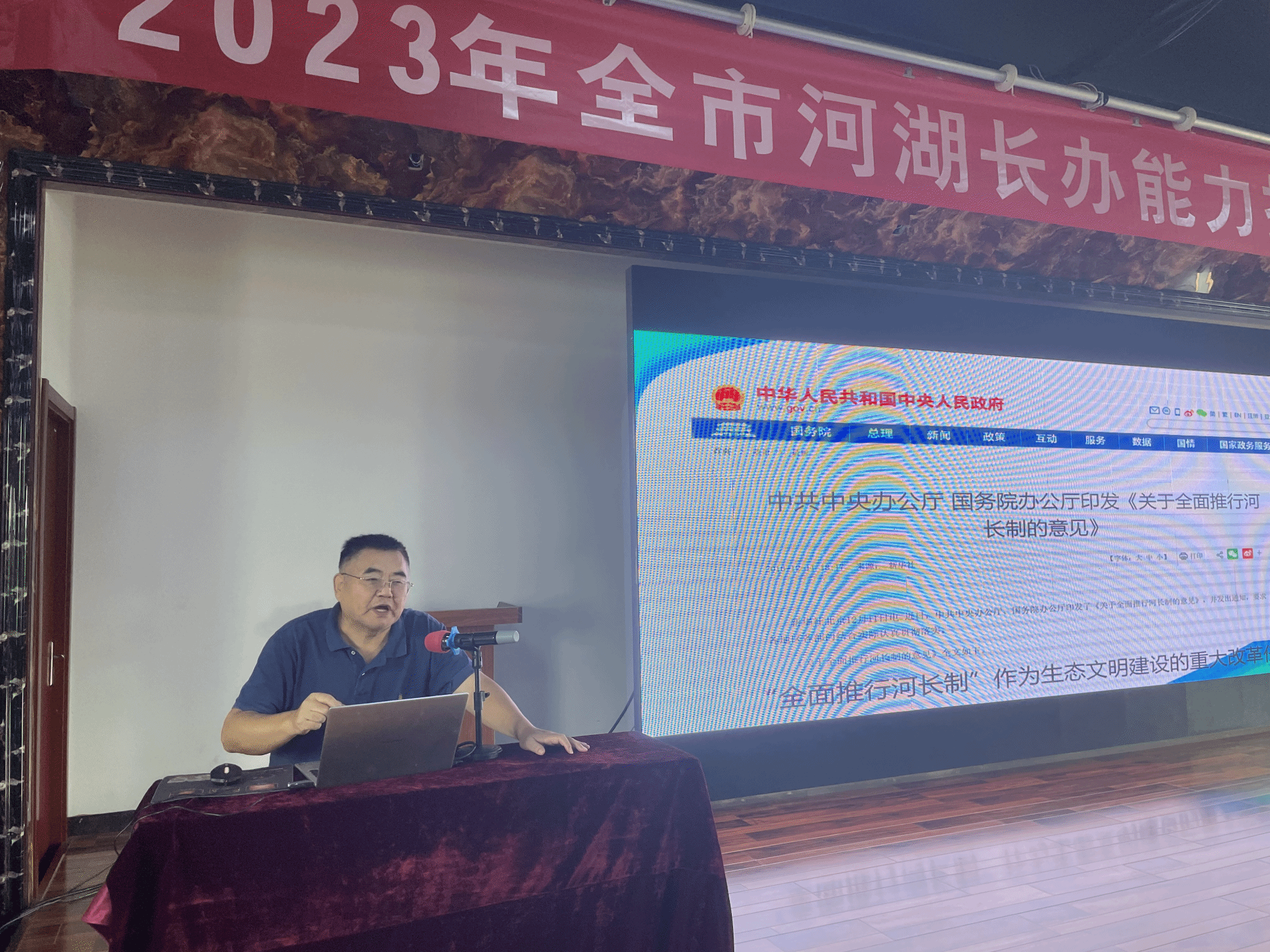 牛保根局长在致辞中表示,全面推行河湖长制是以习近平同志为核心的党中央立足国情水情作出的重大决策和顶层设计,是我国水治理体制和生态环境制度的重大改革创新,各级河长办作为河湖长制落实的牵头部门,承担着重要的组织、协调、分办、督办职能,地位重要、责任重大。水利部和省河湖长制办公室高度重视河湖长办能力建设,水利部河长办专门印发《河长制办公室工作规则(试行)》,省河湖长制办公室连续两年将河长办能力建设列为考核内容。组织举办全市河湖长办能力提升专题培训班,将进一步提升我市各级河长办履职能力,提升河长办工作人员素质,进一步规范履职行为,强化履职效能,对真正使河湖长办成为推动河湖长制落实的重要指挥部、参谋部、督战部起到重要的推动作用。