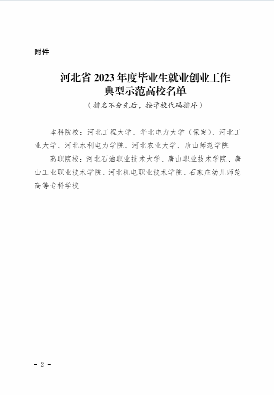1月11日,河北省教育厅下发《关于公布河北省2023年度毕业生就业创业工作典型示范高校的通知》(冀教学函〔2024〕1号),我校成功获评河北省2023年度毕业生就业创业工作典型示范高校。