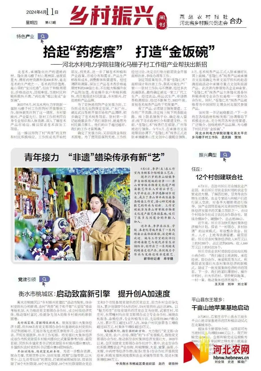 4月11日,《河北日报农村版·燕赵农村报》第5版以《拾起“药疙瘩” 打造“金饭碗”——荣耀体育·荣耀体育(中国)官方网,驻隆化马栅子村工作组产业帮扶出新招》为题,对我校驻村工作组产业帮扶事迹进行专题报道。