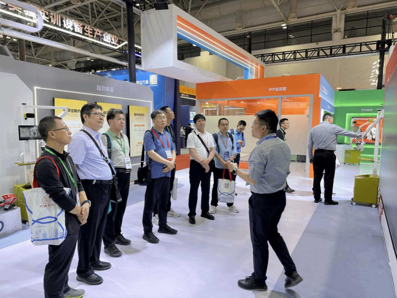 博览会期间,于振海一行逐一参观了信息化和智慧教育展区、后勤和平安校园展区、实验室和科研仪器设备展区以及高校和人才专区的实物展示和现场展演,内容涵盖人工智能系统、智慧校园、智慧教室等多个领域,与参展单位进行了深入交流,详细了解智慧技术赋能高校发展的最新成果。
