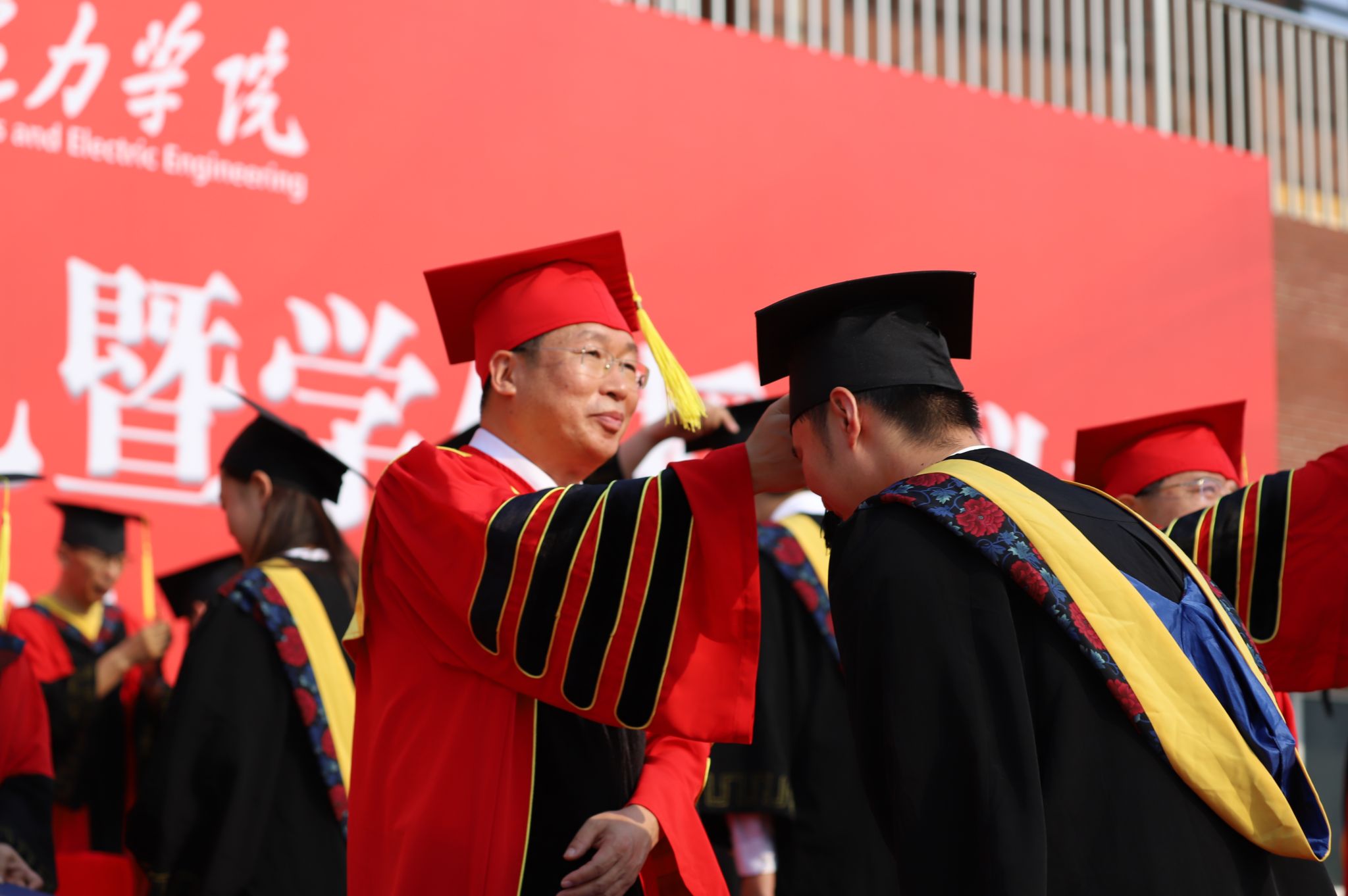在《我们都是水院人》的乐曲声中,全体领导老师目送毕业生离场,毕业典礼在热烈的气氛中圆满结束。
