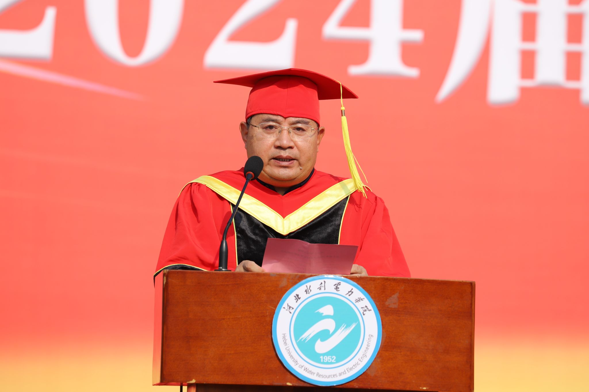 上午7点半,于振海宣布2024届学生毕业典礼暨学位授予仪式正式开始,典礼仪式在庄严的国歌声中正式拉开序幕。