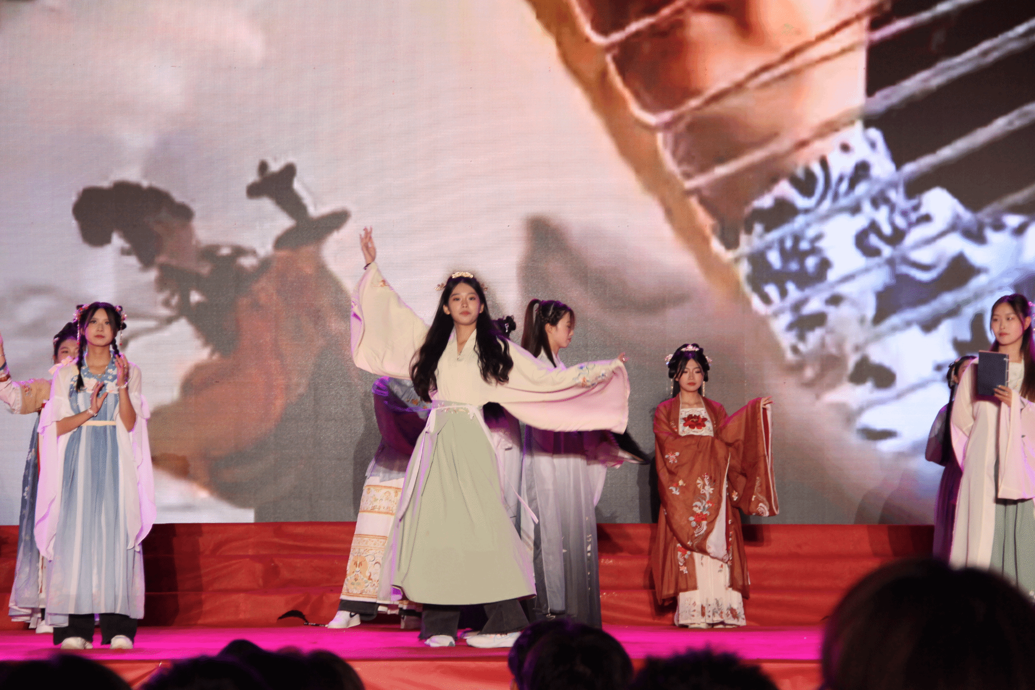 在学生社团展示环节中,各社团充分展示各自特色,民乐社、书法社、武术协会、国标舞协会、街舞汇、汉服社、散打社、吉他社、大学生合唱团、舞蹈团先后带来了精彩表演,以鲜明独特的方式为大家呈现了一场视听盛宴;由校史宣讲团朗诵的《我从平山走来》,为同学们讲述了我校艰苦创业的发展历程;由河北省非物质文化传承人赵健、齐雪平带来的杂技与魔术更是精彩绝伦,现场时时响起热烈掌声。整场晚会气氛热烈、精彩纷呈,彰显了我校学生社团的澎湃活力和青年学子的激情与才华。