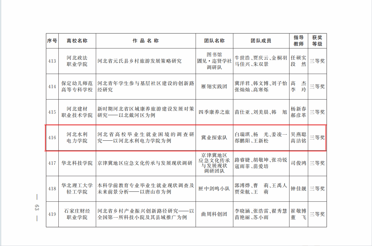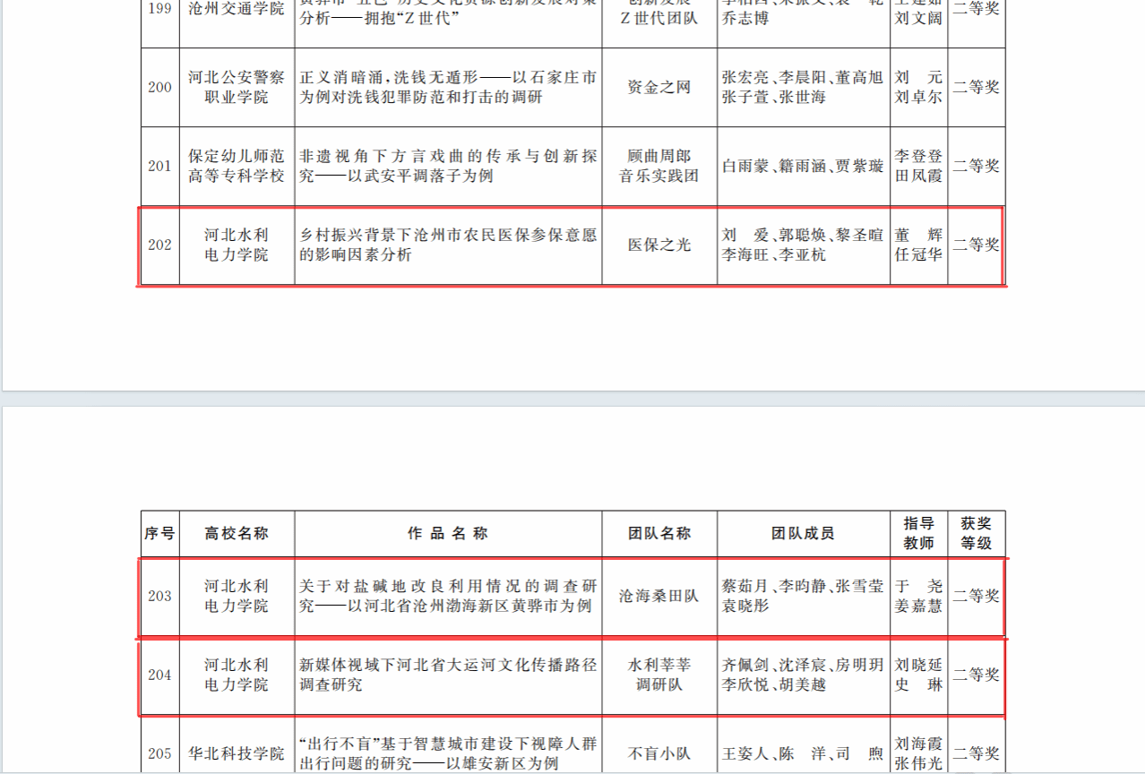 近日,共青团河北省委、河北省社会科学院以及河北省学生联合会公布了关于2023-2024年度河北省大学生“调研河北”社会调查活动情况,我校沧海桑田调研队《关于对盐碱地改良利用情况的调查研究——以河北省沧州渤海新区黄骅市为例》、水利莘莘调研队《新媒体视域下河北省大运河文化传播路径调查研究》、医保之光调研队《乡村振兴背景下沧州市农民医保参保意愿的影响因素分析》分别在活动中荣获二等奖,冀业探索调研队《河北省高校毕业生就业困境的调查研究——以荣耀体育·荣耀体育(中国)官方网,为例》荣获三等奖。调研活动自2024年1月开展以来,校团委精心谋划部署,广泛宣传动员,吸引了本校32名教师、100多名同学参加调研,共计报送27个参赛项目,最终4个项目顺利结项并获奖。