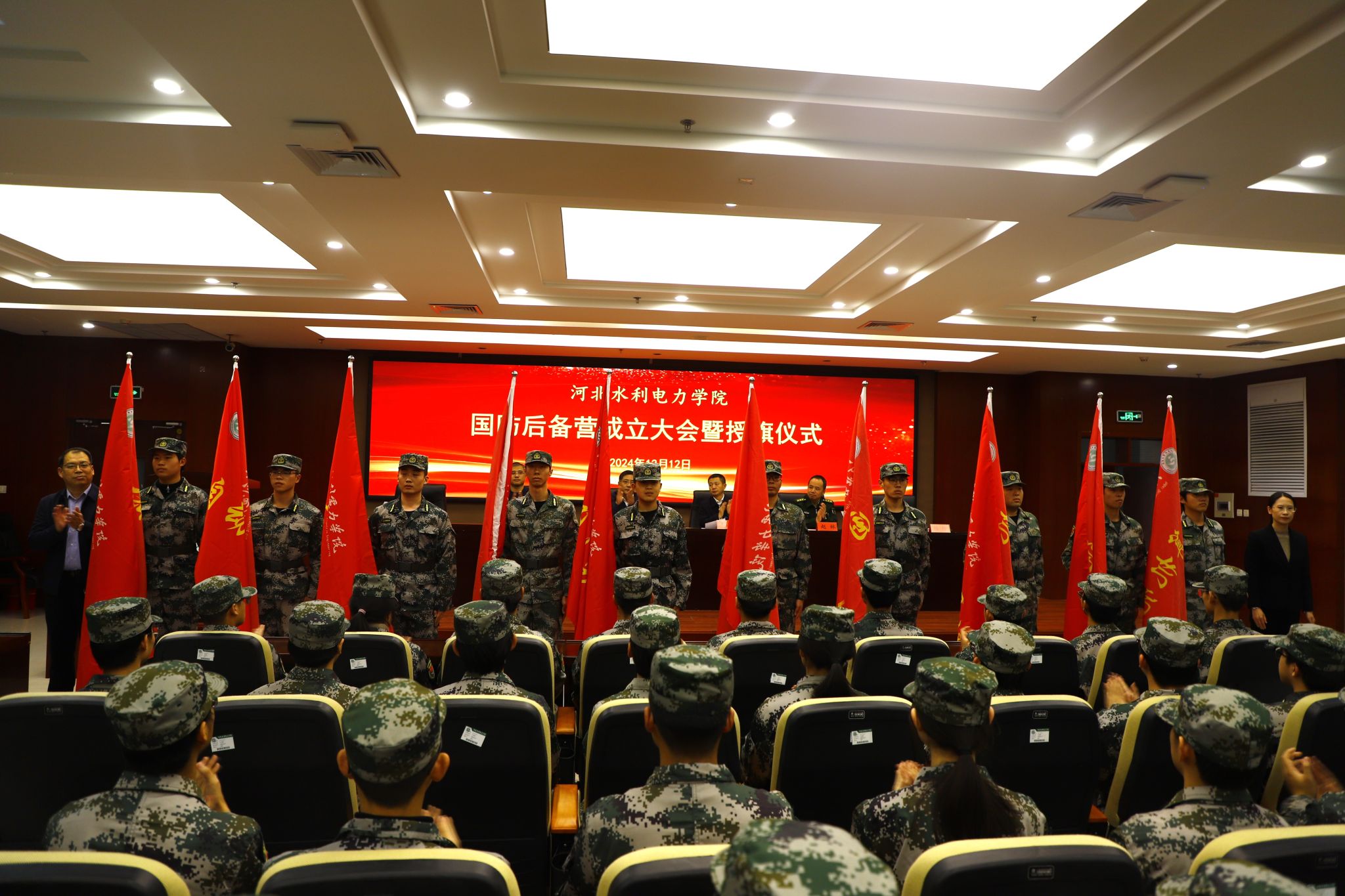 成立大会在雄壮的国歌声中拉开帷幕,杨凯代表学校党委宣读《关于国防后备营成立及有关任命的决定》。王滨为学校国防后备营授营旗,国防后备营营长郑宝民和教导员路维为国防后备营各连队授旗。营员代表王贺朝同学作表态发言,表达全体营员把个人的理想追求融入国防事业发展的信心和决心。赵林代表属地军事部门讲话,对我校国防教育工作给予充分肯定,对我校国防后备营的成立表示祝贺。
