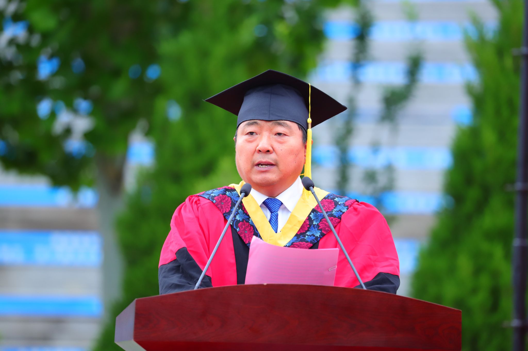 仲夏时节,瓜果飘香。6月19日上午,我校2025年毕业典礼暨学位授予仪式在中心广场隆重举行。党委书记张效松,党委副书记、校长王滨,党委副书记崔立功,副校长杨凯,副校长董志良,纪委书记鲁增秋出席仪式,学校学位评定委员会委员、优秀校友、教师及毕业生代表共计800余人参加毕业典礼。典礼仪式由副校长于振海主持。