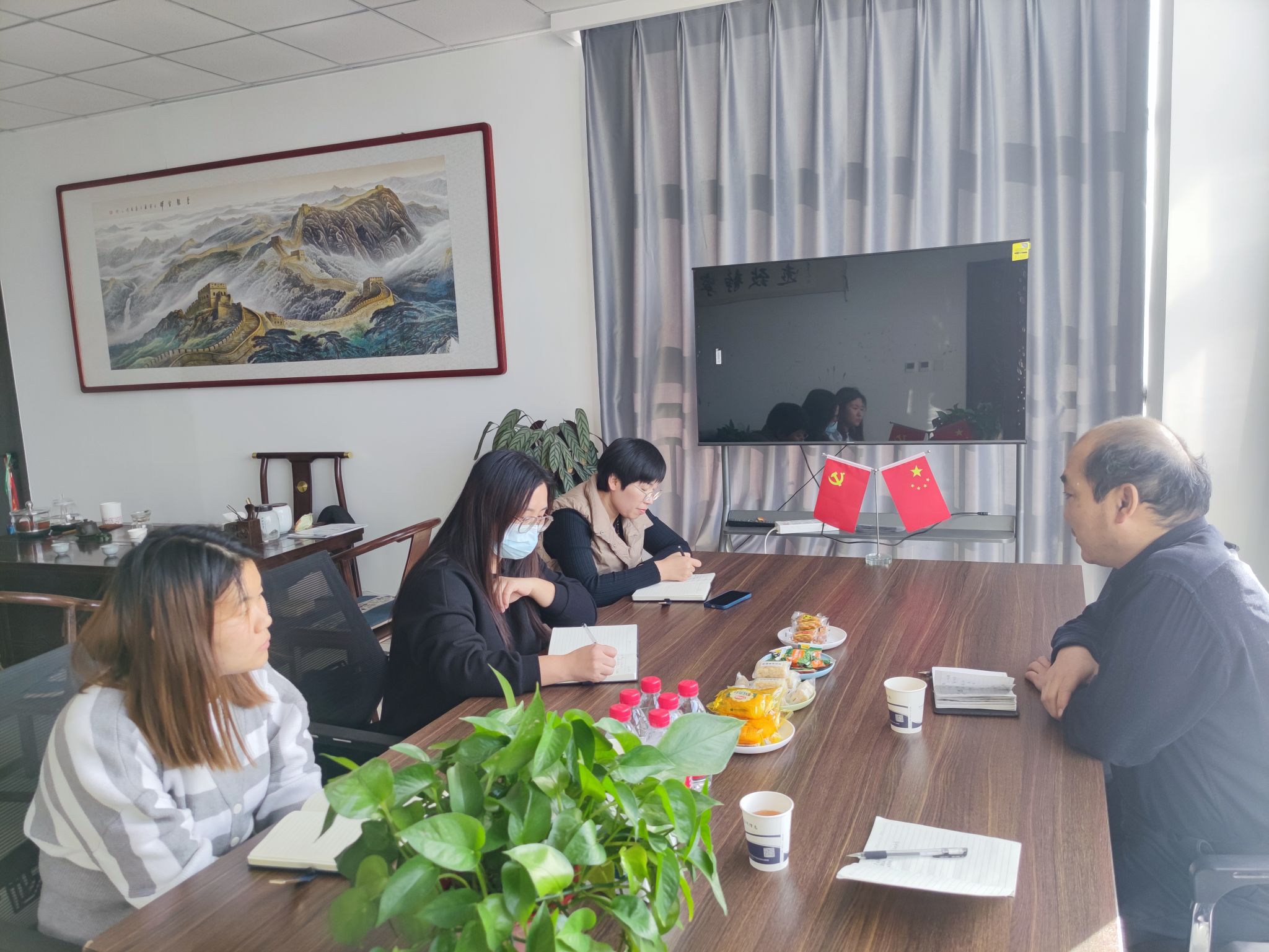 在参观企业后,校企双方负责人进行交流座谈。会上,王玉江总经理、教学主管贺芸等企业代表对电气自动化系一行来访表示热烈欢迎。校企双方围绕毕业生就业形势、人才职业能力培养、企业用人需求等方面展开深入交流。电气自动化系唐勇主任代表我系对企业提供的交流机会表示感谢,并介绍电气自动化系近年来各专业招生就业的基本情况,与企业探讨了双方开展切实合作的可行方向和实施路径。同时,他表示希望能与用人单位进一步加强合作,给毕业生提供更多就业岗位,实现毕业生更充分、更高质量就业。王玉江总经理也希望双方继续深化多方面合作,将高校理论知识优势与企业实践优势充分结合,为企业发展打造高质量人才梯队。此外,电气自动化系老师参观了河北工业大学创新研究院(石家庄)科技成果展,进一步了解了如何更好推进产学研用深度融合,服务区域产业转型升级和创新发展。