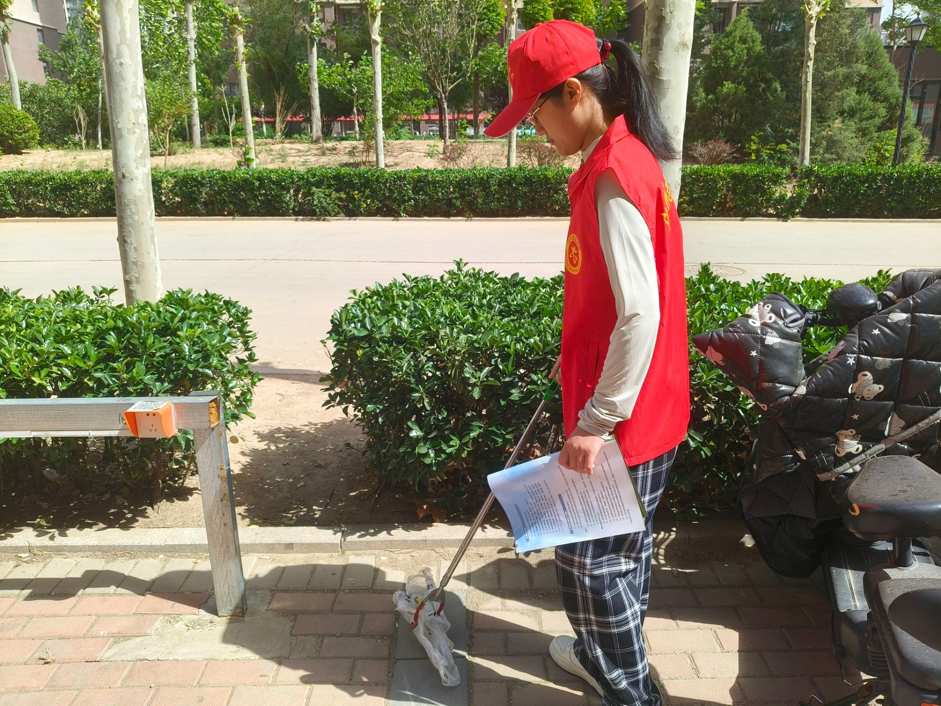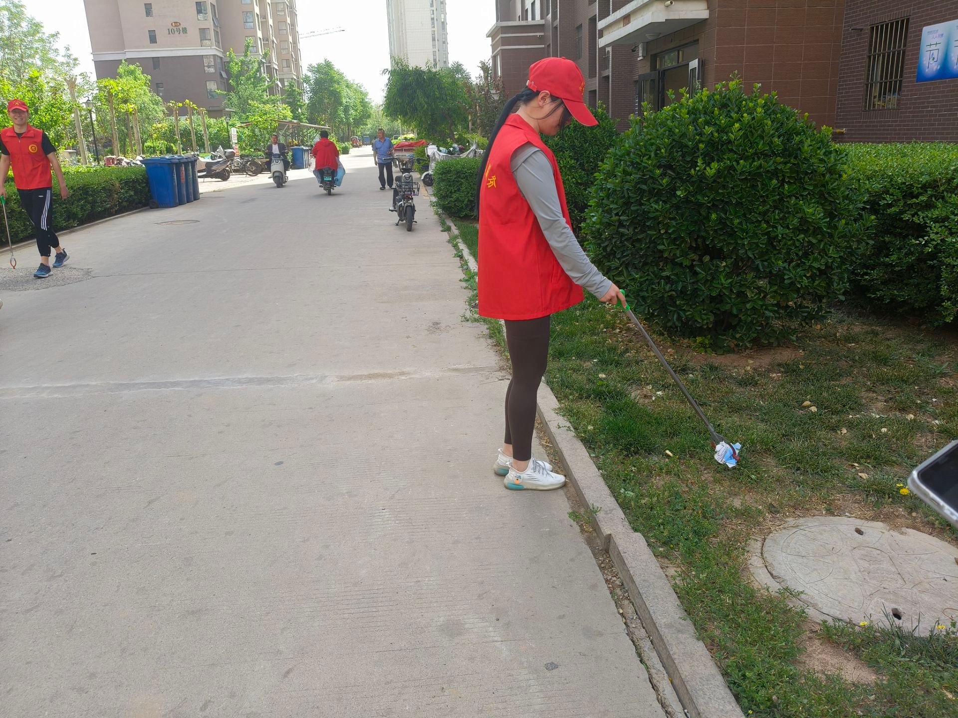 活动开始后,志愿者们迅速投入到工作中。他们手持扫帚、垃圾袋等工具,认真清扫小区内的烟头、纸屑、垃圾和动物粪便,清理楼道杂物,清除乱贴乱画的小广告。经过大家的努力,小区环境焕然一新,变得更加整洁美观。志愿者们积极引导居民将车辆停放在指定位置,确保停车秩序井然。对于遛狗不牵绳、飞线充电、上身赤裸、随意晾晒等不文明行为,志愿者们也进行了耐心地劝导,向居民宣传文明城市创建的重要性,引导大家养成良好的文明习惯。