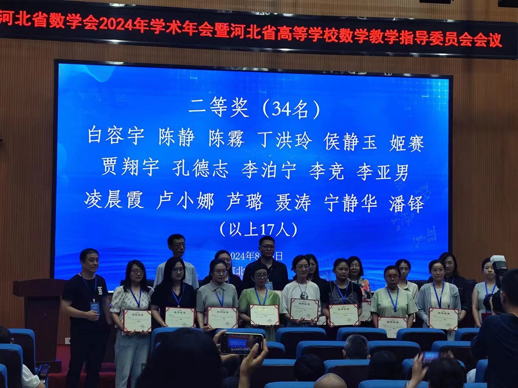 8月3日至6日,由河北省数学会、河北省高等学校数学教学指导委员会共同主办,河北师范大学承办的“河北省数学会2024学术年会暨河北省高等学校数学教学指导委员会会议”在石家庄市召开。我校基础部数学教研室主任肖金桐带队,王焕东、刘营营、张晓雅、潘梦曦、朱迪共同参会,青年教师孟杰、孔德志作为代表参加高校青年教师课堂教学比赛。