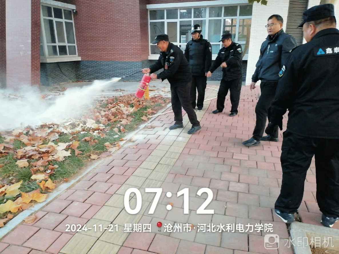 首先,全体保安员在南门集合开展灭火演练。安全工作处处长欧仁辉讲解了消防安全知识,详细阐述了火灾的危害性,重点介绍了ABC型干粉灭火器的灭火原理、适用范围以及使用时的关键步骤和注意事项。随后,参加演练人员手持灭火器,依次上前进行实操演练,掌握了灭火器的正确使用方法。