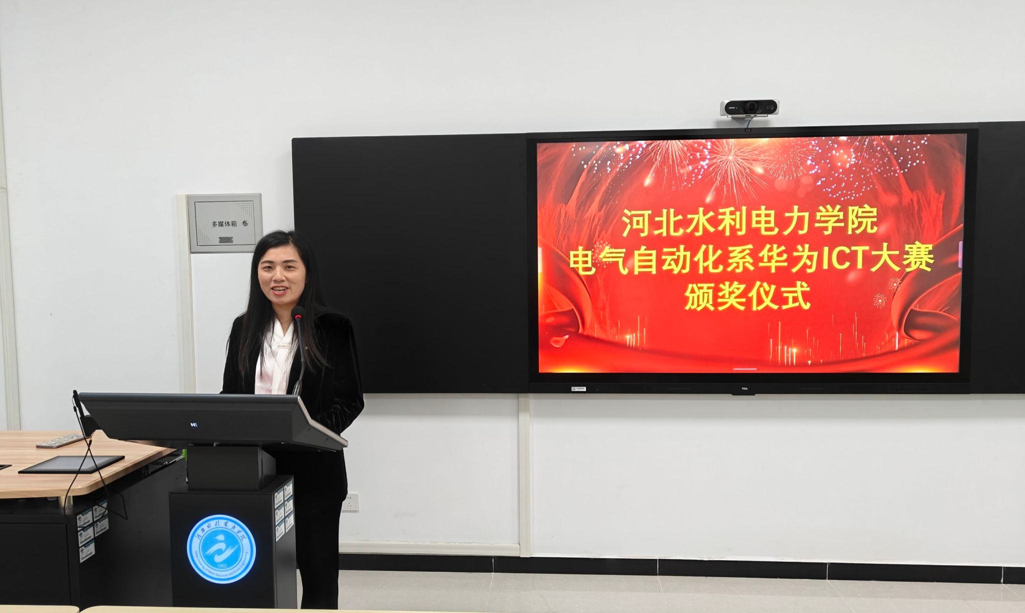为激发和培养大学生的创新精神,提升创新实践能力,近日,电气自动化系举办华为ICT大赛颁奖仪式,电气自动化系党委书记葛洪伟,主任唐勇,副主任吉庆昌,通信教研室主任潘平平、教师张汝峰参加颁奖仪式现场,系团委书记张宁主持本次仪式。